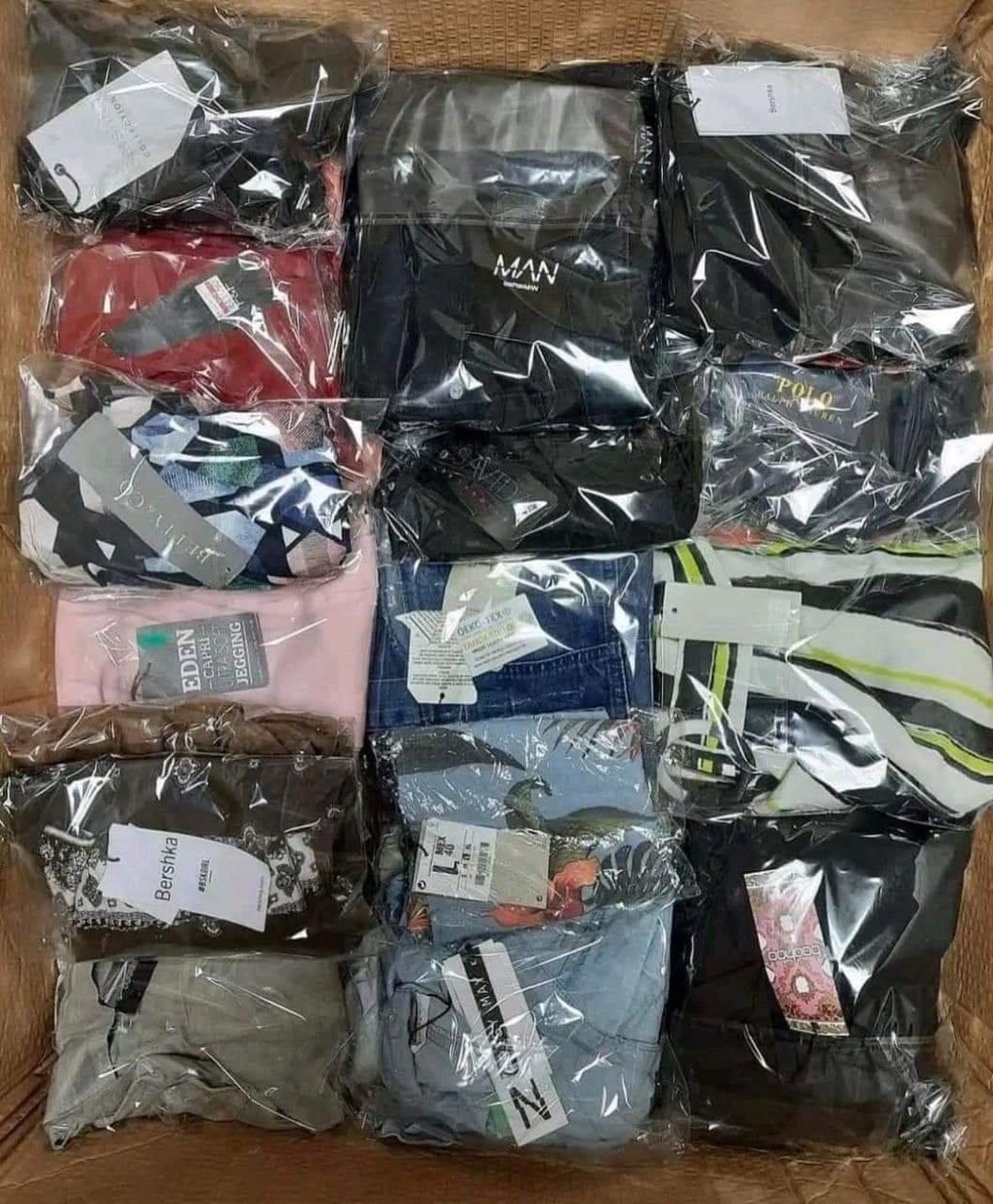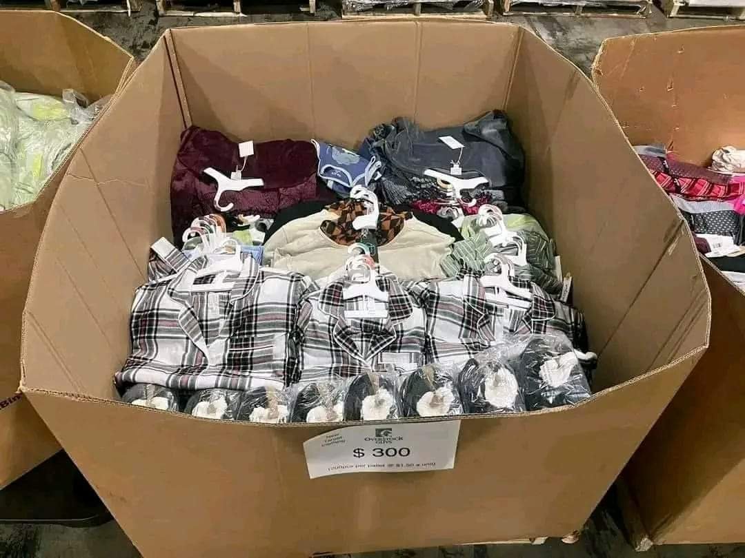 – Contents: jackets, sweaters, lined pants, shirts, double packs, sweaters, pajamas … (see photo)