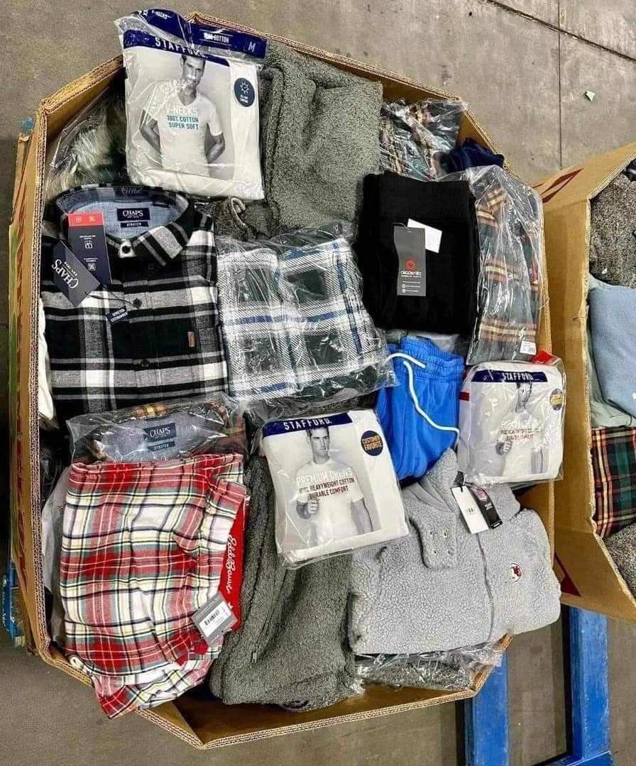 Mixed pallet of men clothing available all brand new and original each pallet cost $600 comes out with 800 pieces