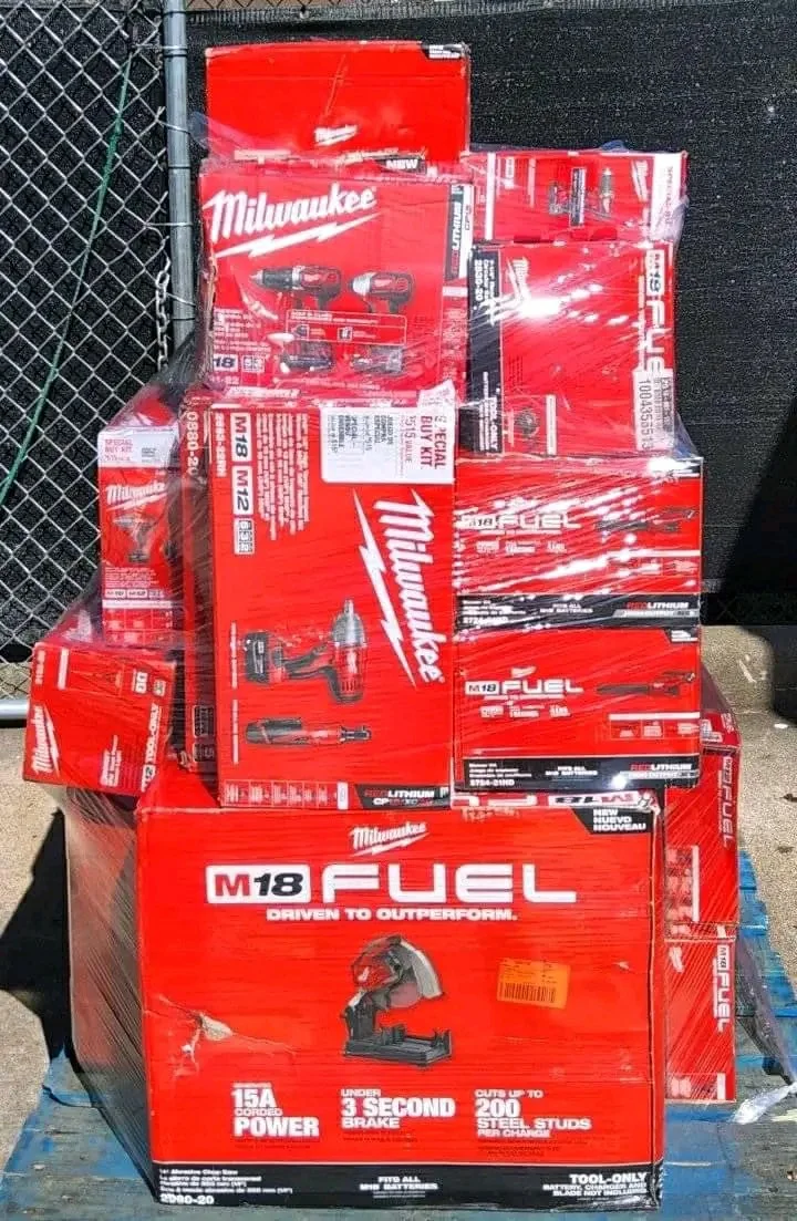 Milwuakee Tools Pallet Available here contains 20-25 items each $600. All items are brand new. Made these pallets for those who are complaining of the high price on the 60 – 70 items pallets.